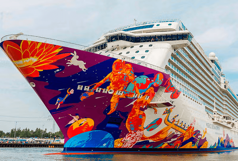 Tecton Service, a big coating company in the cruise ship industry, wanted a unique artwork for their Düsseldorf main offices something that reflected their connection to the World Dream cruise ship, whose exterior they helped bring to life. They requested a large, handcrafted painting of the ship, inspired by the original artwork by Jack Tsai, as a visual statement and memory piece for their office.